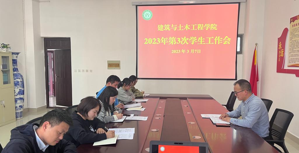 3月7日下午,万博max体育官网入口在综合实验楼402会议室召开本年度第三次学生工作会。党委副书记冀鹏和全体辅导员(班主任)参会。