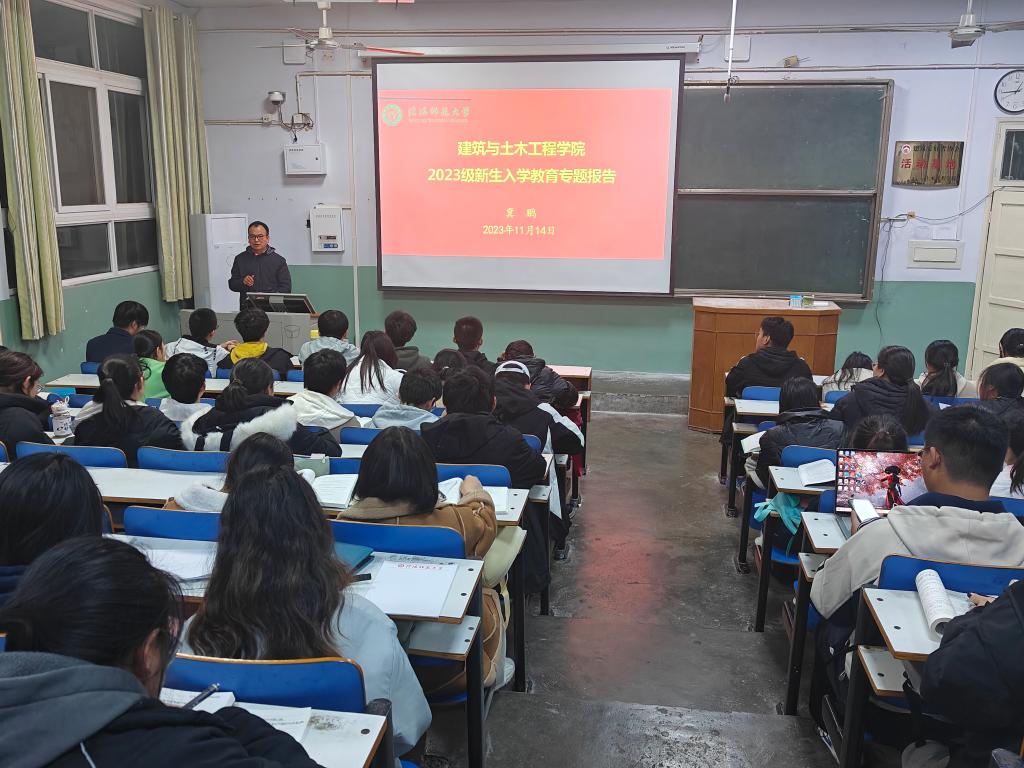 根据学校2023级新生入学教育实施方案和我院新生入学教育工作安排,11月14日晚,万博max体育官网入口党委副书记冀鹏在教二T5为2023级新生作入学教育专题报告,2023级班主任及全体学生参加会议。