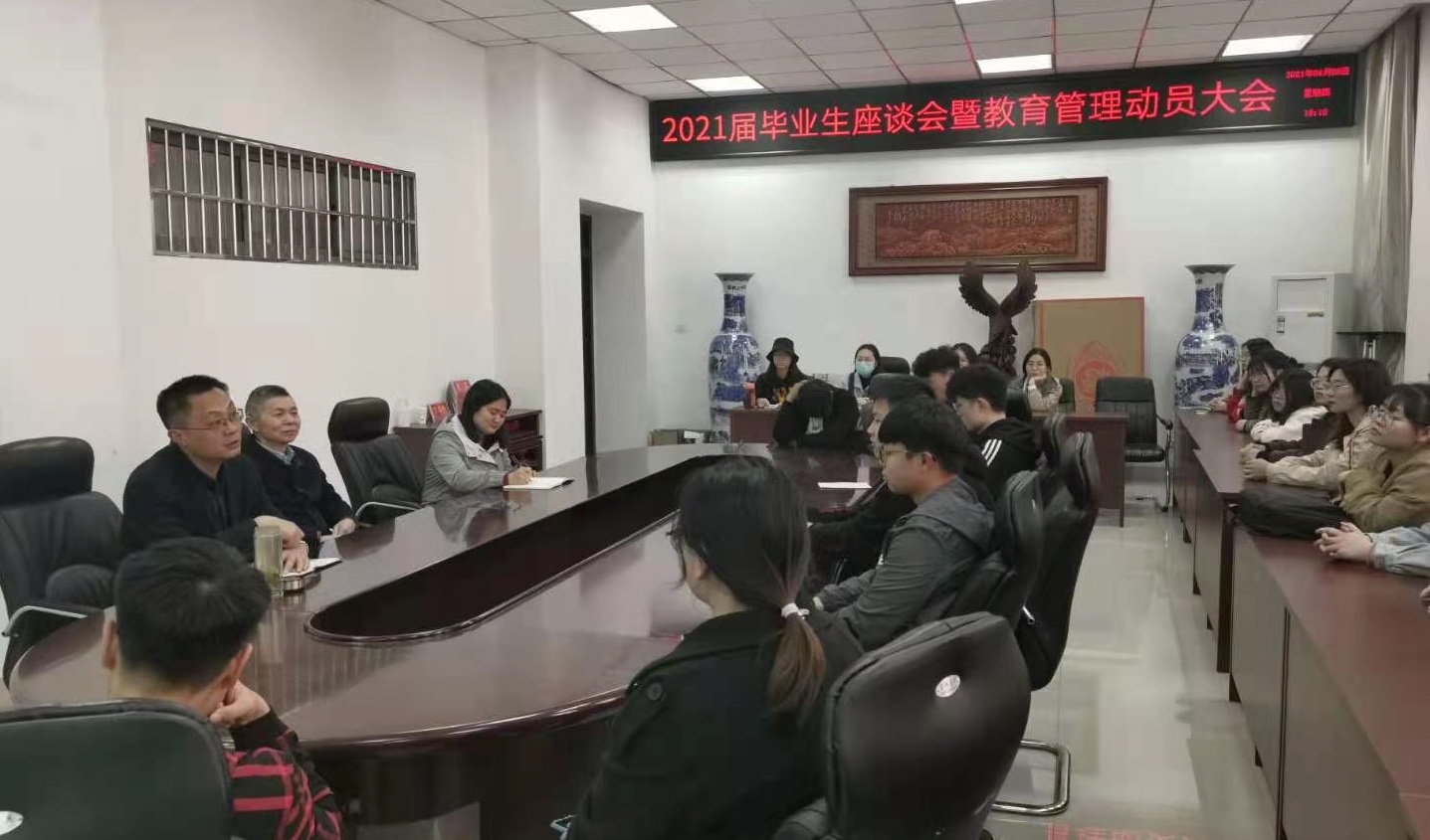 为进一步加强学生与学院的沟通联系,倾听毕业生心声,及时掌握毕业生的思想、学业、就业、生活等各方面的情况,针对性地解决毕业生在学习、生活中遇到的困难,我院于4月8日下午4点在综合实验楼206会议室召开2021届毕业生座谈会暨教育管理动员大会。学院党委书记黄学玉、副书记方明科、毕业班辅导员及毕业生代表40余名参加了会议。