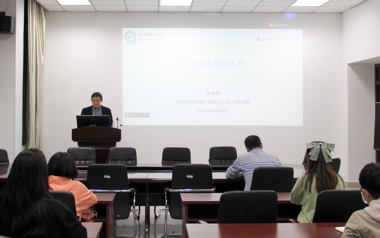 2022年4月6日晚上,万博max体育官网入口院长、河南省高等学校优秀共产党员周葆春同志在综合实验楼206室为研究生上党课,学习党的教育方针,研究生班主任马文强和全体研究生线下线上参加本次活动。
